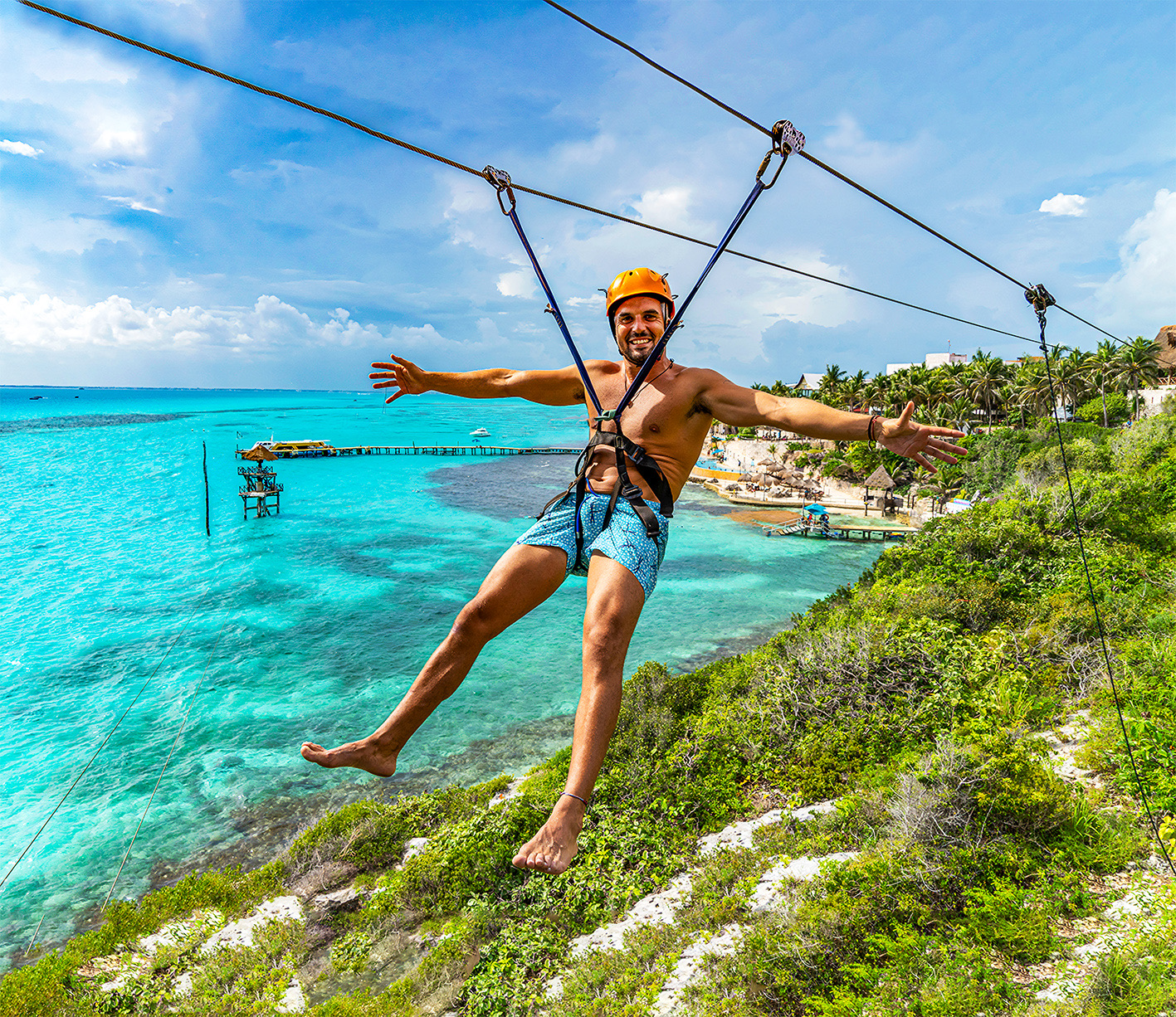 Where the cliffs meet the turquoise sea. Enjoy a full day of adventure and fun at the most iconic natural park in Isla Mujeres.